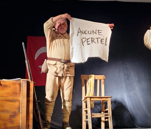 Çanakkale’de, ayak tabanları yara içinde, cephesine sedyeyle gitmeye çalışan Balkan Gazisi Hüseyin Çavuştan; günlerdir yarı aç olmasına rağmen, karşılaştığı Avustralyalı askere ne kadar iyi yemek yediğini anlatan Sefer Onbaşıya; yüzlerce askeri şehit olmasına rağmen, düşmana “Tek Bir Kayıp Yok” diye pankart yazıp gösteren subaya kadar...